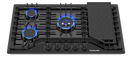 GASLAND Gas Cooktop 36 Inch with Griddle, PRO GH3365EF 5 Burner Propane Stovetop with Reversible Cast Iron Grill/Griddle, Gas Countertop Plug-in, NG/LPG Convertible Cooktops, Black