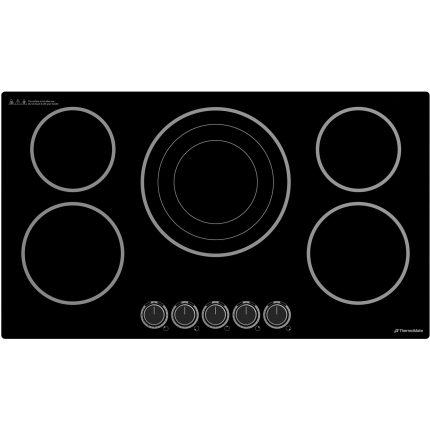 ThermoMate 36 Inch Electric Cooktop, 5 Burners Knob Control Built-in Ceramic Cooktop, 30″ Radiant Electric Stove Top of 9000W with 9 Heat Levels, Hot Surface Indicator, 220-240v, Hard Wired