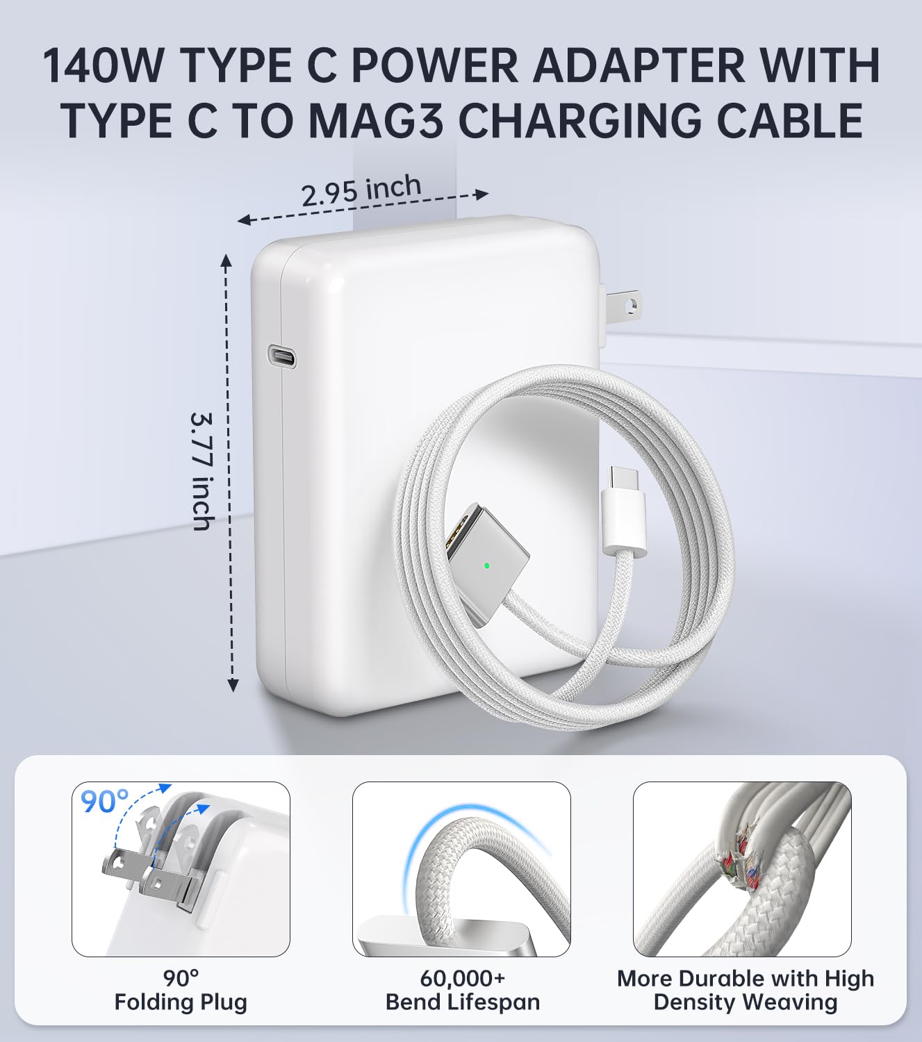 - 【140W Super Fast Charging — The Ultimate MacBook Pro Charger】 Experience lightning-fast power that leaves 96 W and 70 W chargers behind. The 140W MacBook Pro charger supports PD 3.1 high-efficiency output, reaching 60–80 % in just 30 minutes. Perfectly engineered for MacBook Pro 14″/16″ and MacBook Air 13″/15″, it keeps up with the energy demands of M1, M2,M3 and M4 Pro Max chips, ensuring uninterrupted creativity and productivity