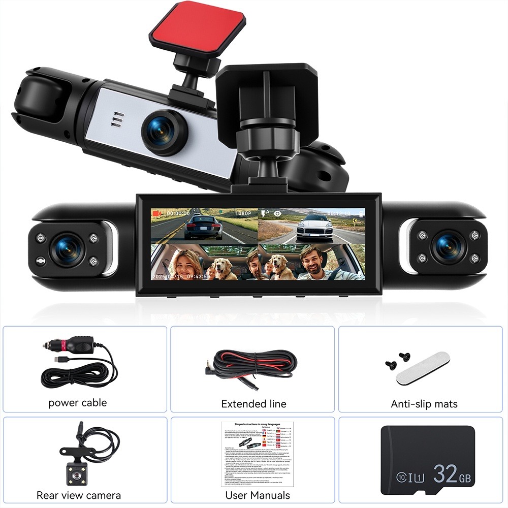 Experience advanced driving security with the 1080P Full View Car Dash Cam. Designed for comprehensive coverage, this device features four lenses providing a full 360°C view, ensuring every angle of your journey is captured. Equipped with night vision, motion detection, and an easy installation process, it allows you to drive with confidence at any time of the day. The camera supports reverse image display and is compatible with thirteen languages for widespread accessibility.