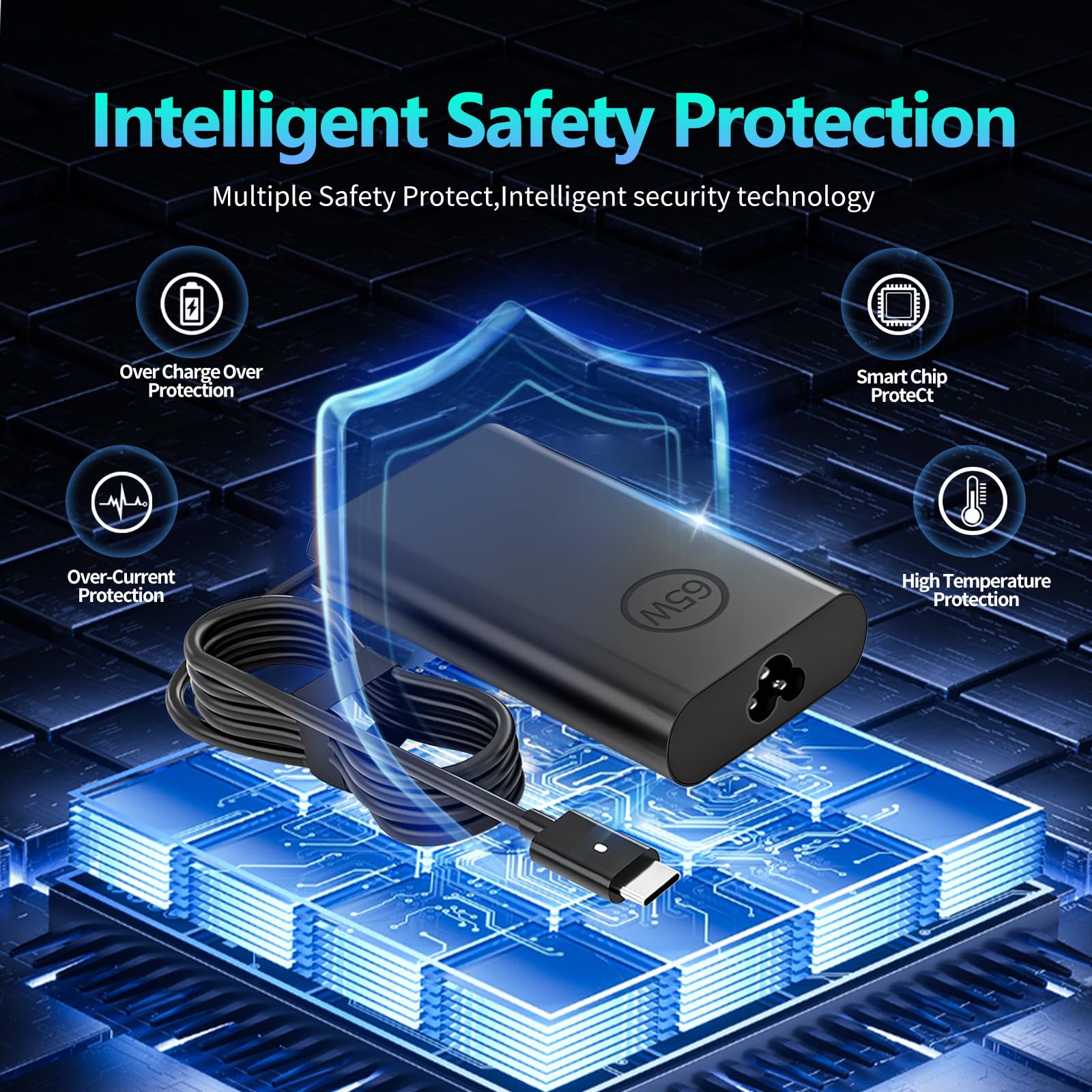 65W USB-C Laptop Charger for Dell Laptop Latitude 5530 5420 5430 5520 5540 7430 7440 7340 7530 7330 7320 Chromebook 3100 9250 9360 9365 9370 9380 9350 9550 Adapter Power Cord