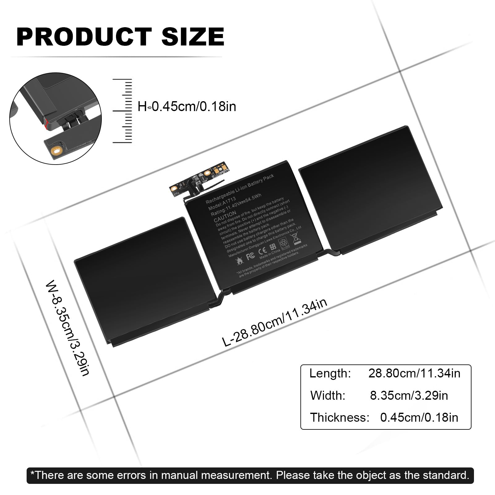A1708 A1713 Battery for A2171 A2159 A2289 A2338, Compatible with MacBook Pro 13 Inch (Late 2016, Mid 2017, Mid 2019, 2020), EMC 2978 3301 3456 3578 3164 020-00946 MacBookPro13,1 14,1 – 11.4V 54.5Wh