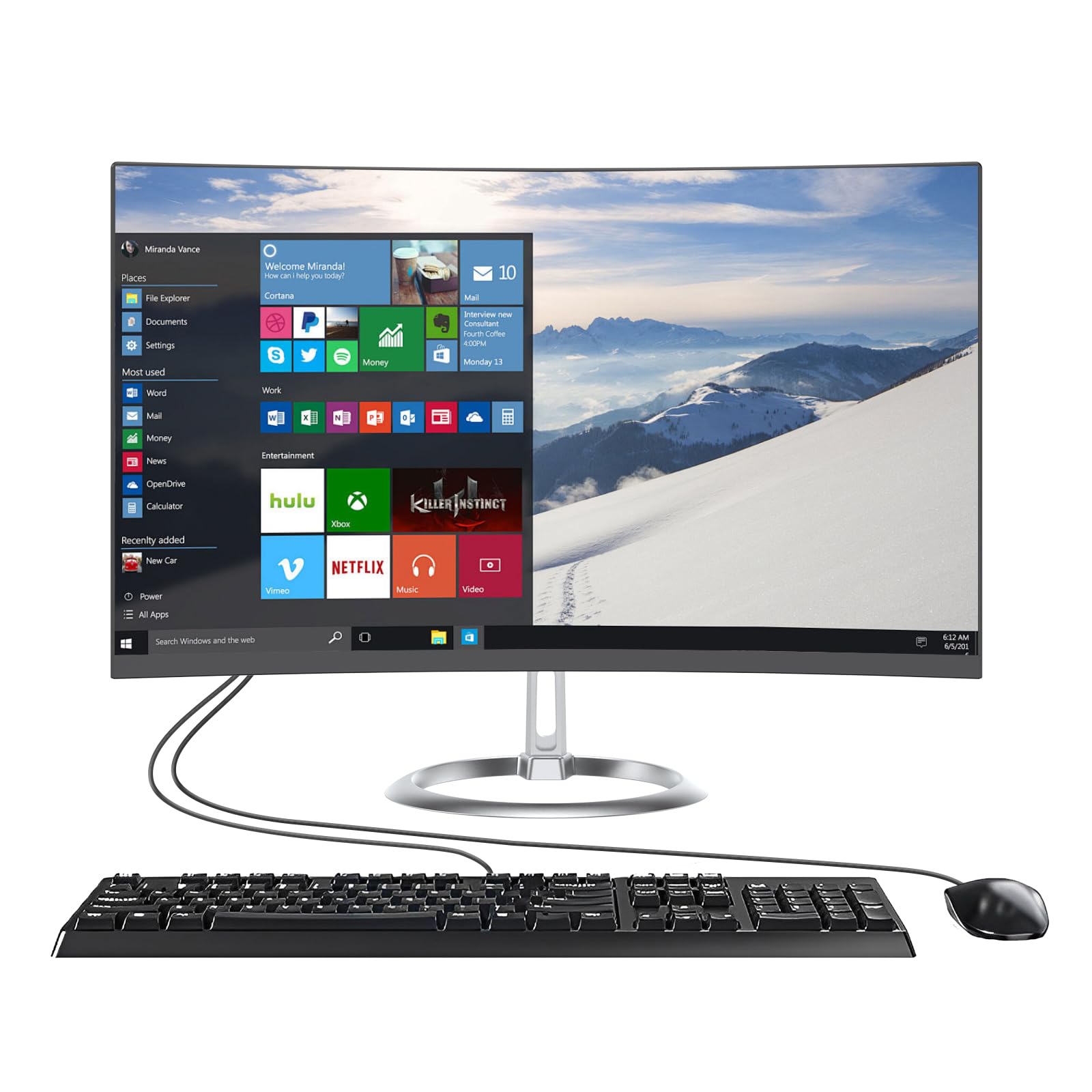 - All-in-One Desktop Computer PC, 24” FHD Curved Display Monitor I3-8100T Quad-Core Processor 16GB RAM 512GB SSD Desktop, WiFi Bluetooth Keyboard & Mouse for Home Business Office Gaming