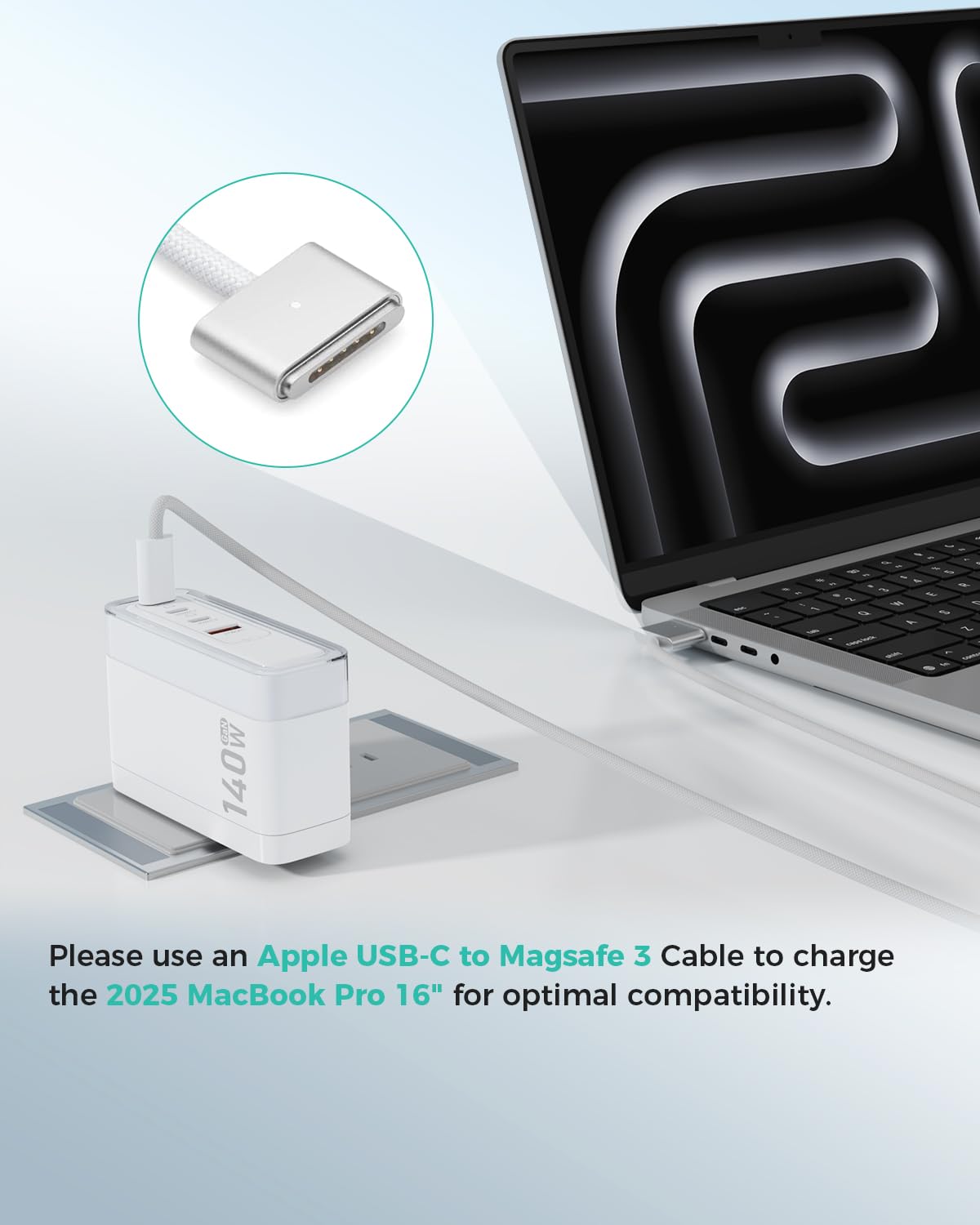 • Universal Compatibility: 【Please use an Apple USB-C to Magsafe 3 Cable to charge the 2025 MacBook Pro 16“ for optimal compatibility】 MacBook Air/ Pro Series,iPhone 17/16/15/14/SE Series,iPad Pro/Air Series,AirPods,Samsung Galaxy S25/S24/S23 and more Series,Google Pixel 10/9/8 /7,HP Chromebook 14,Yoga/ThinkPad,Microsoft Surface Pro,Razer Blade Series,MSI gaming laptop,Dell/ASUS/Acer laptop,Steam Deck,Nintendo Switch Series,Legion Go,DJI Mavic 3/Avata 2/Air 3s/Osmo pocket 3,Anker power bank series