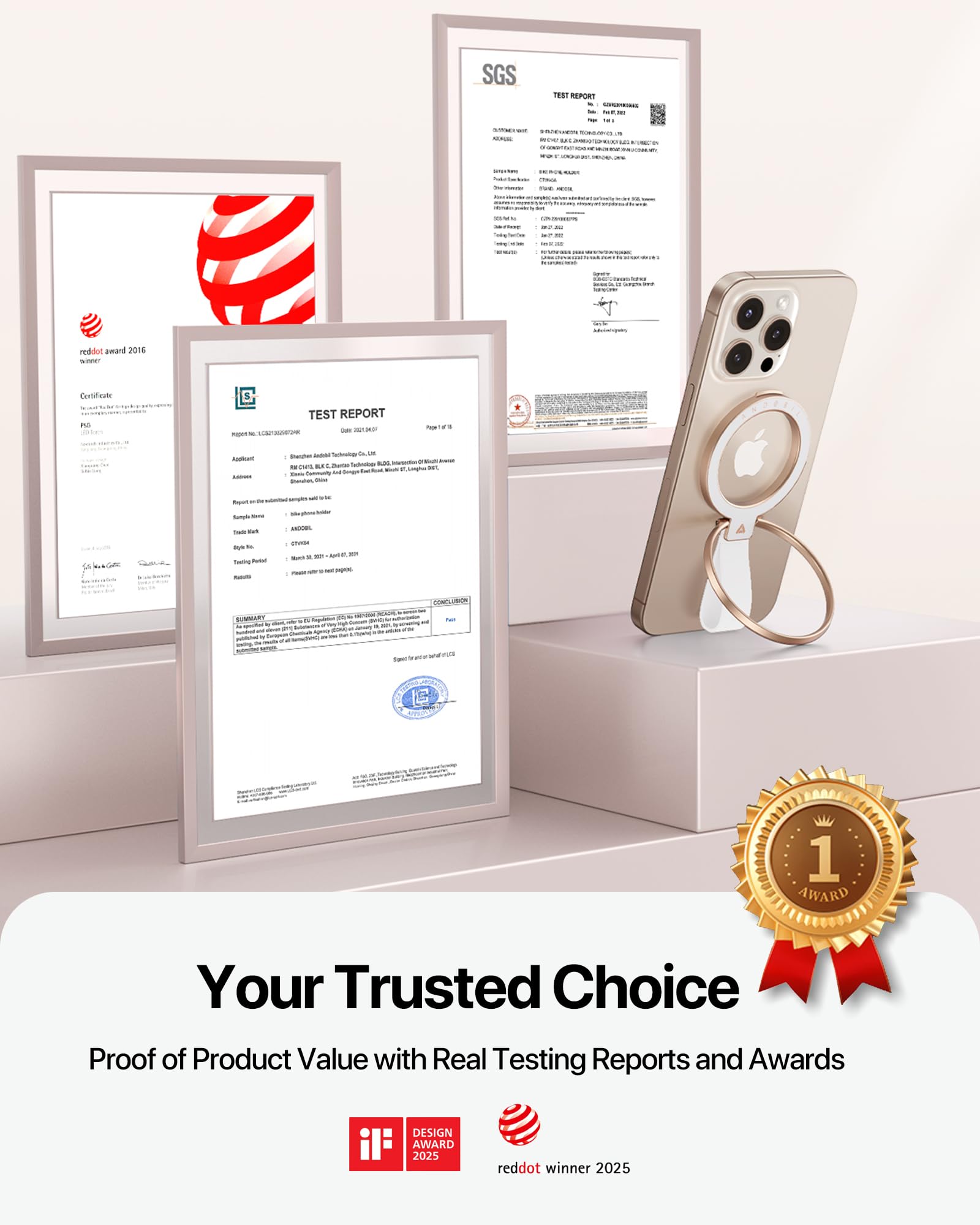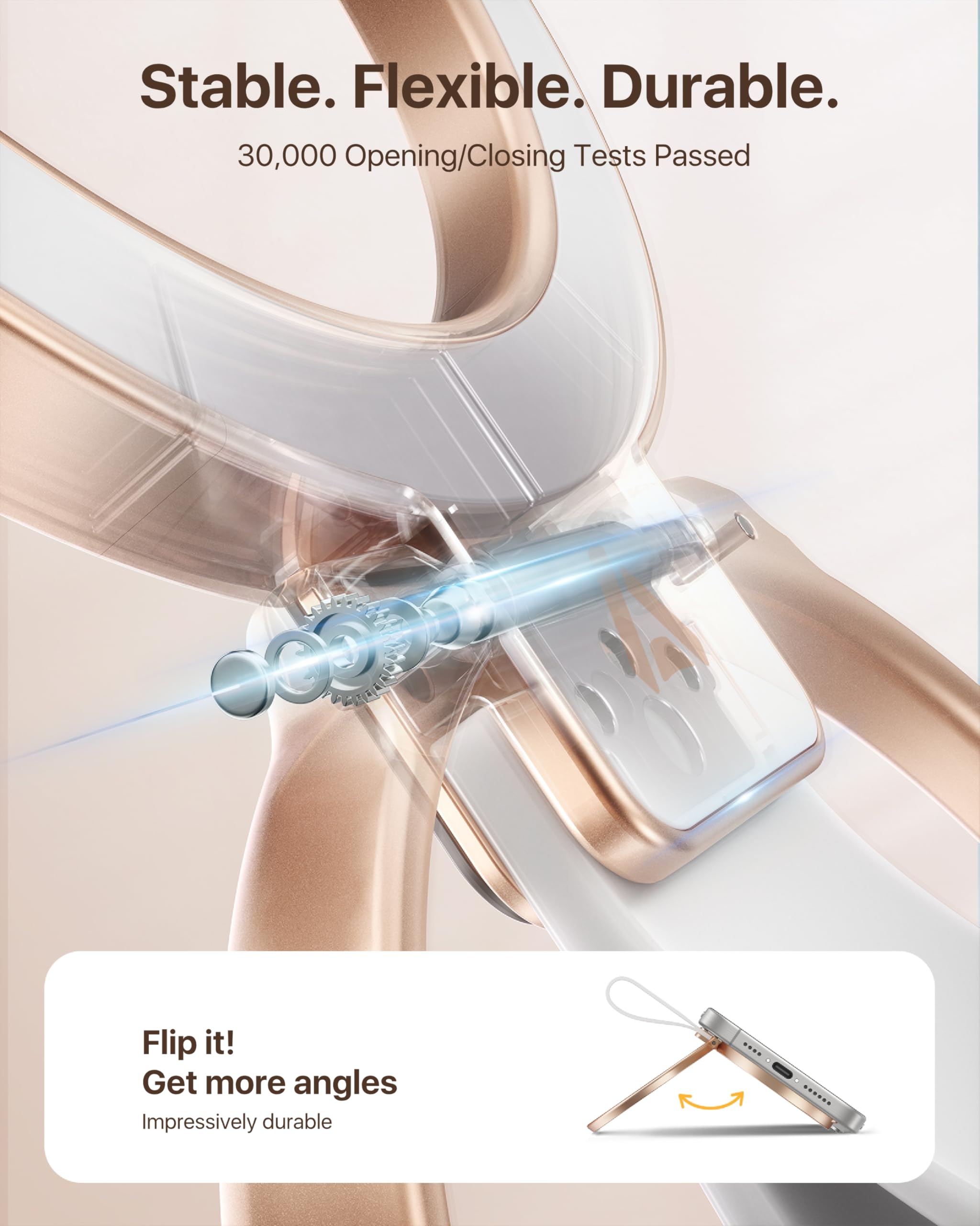 • Stable and Durable·Mechanical Structure: The Andobil MagSafe ring stand is crafted from military-grade zinc alloy and precision engineering, ensuring unparalleled stability. Even with a gentle push from a kitten, it remains steadfast and unyielding. After undergoing 30,000 fold tests, the phone ring holder still maintains its grip, showcasing exceptional durability