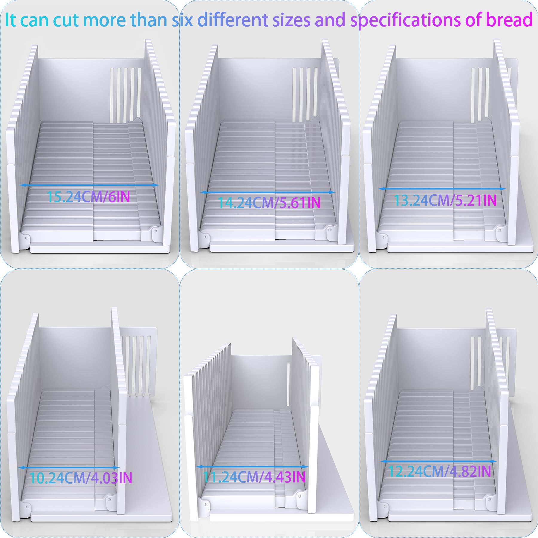 - SUPERIOR QUALITY MAKINGS:The whole uses high-quality ABS plastic compared to bamboo materials. It does not crack, does not stab, does not hurt your hands, is heat-resistant, and can be reused.The back piece holds the bread in place, while the silicone non-slip base prevents sliding during slicing, ensuring safe use.