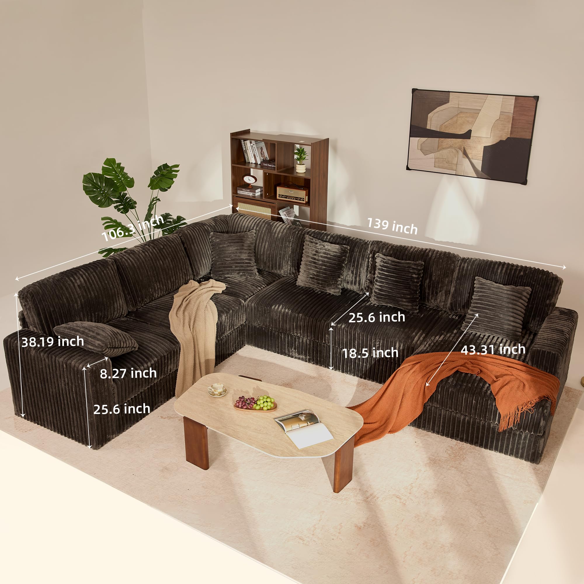 - Spacious 7-Seater Design: This oversized U-shaped sectional is designed to comfortably accommodate up to 7 people, making it perfect for family gatherings, entertaining guests, or simply stretching out in comfort. With a total width of 139 inches, it brings an impressive presence to large living rooms while maintaining an elegant, inviting layout
