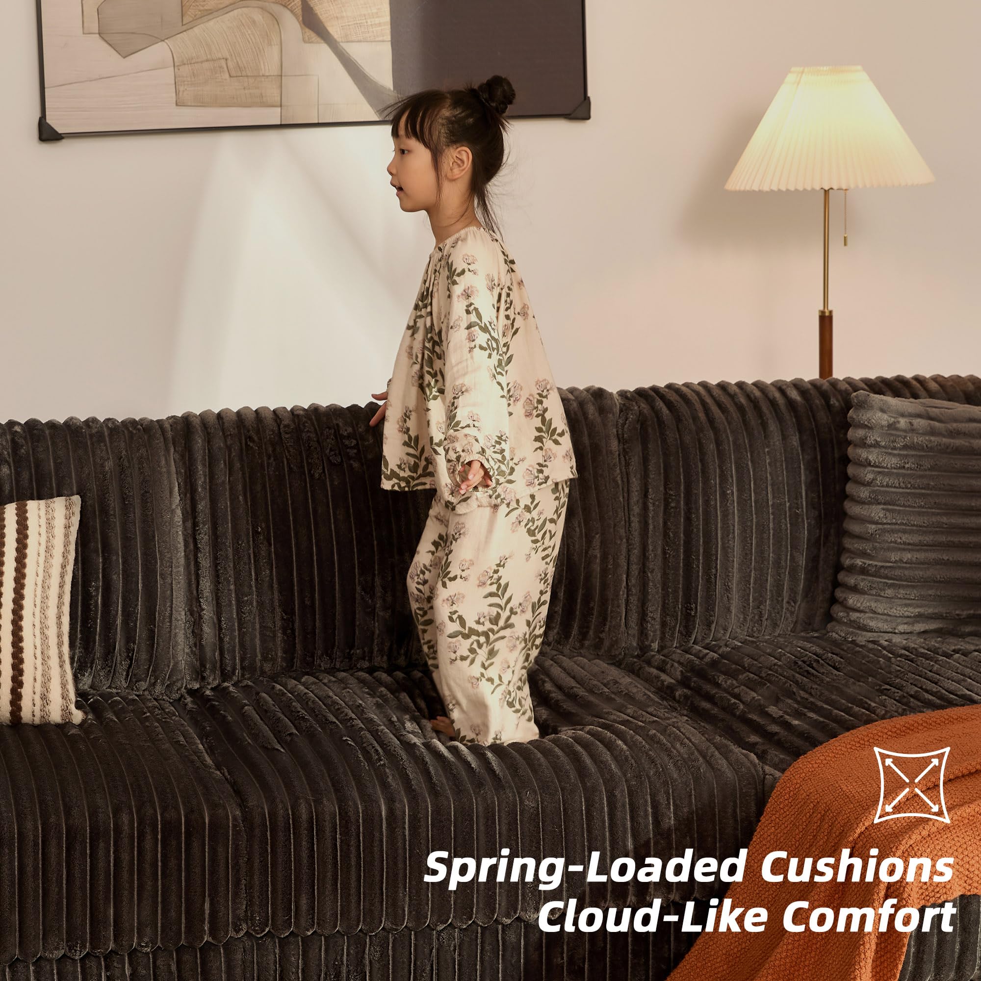 - Premium Corduroy Fabric: Wrapped in luxuriously soft corduroy, this oversized couch offers a cozy, skin-friendly texture that’s both breathable and easy to maintain. The fabric not only elevates the visual appeal with a touch of modern elegance and warmth, but also resists daily use, making it ideal for households with kids or pets