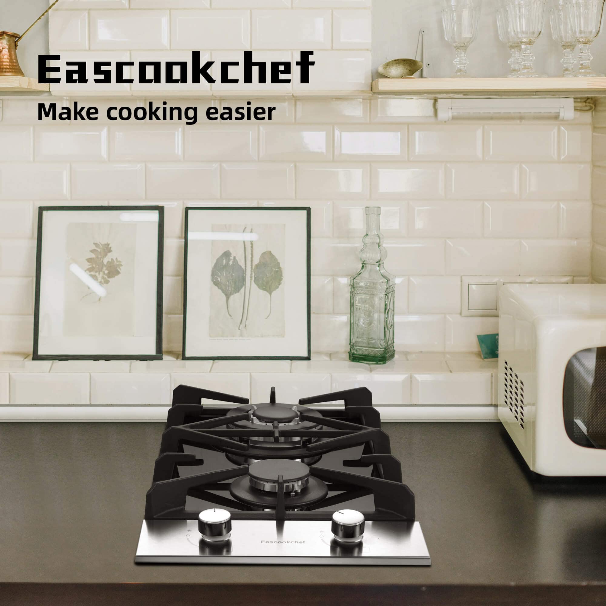 Eascookchef 2 Burner Gas Cooktop, 12 inch LPG/NG Dual Fuel Built-in Gas Stove Top, Black Tempered Glass Stove, Propane Cooktop for Apartment, Outdoor, RV, With Thermocouple Protection