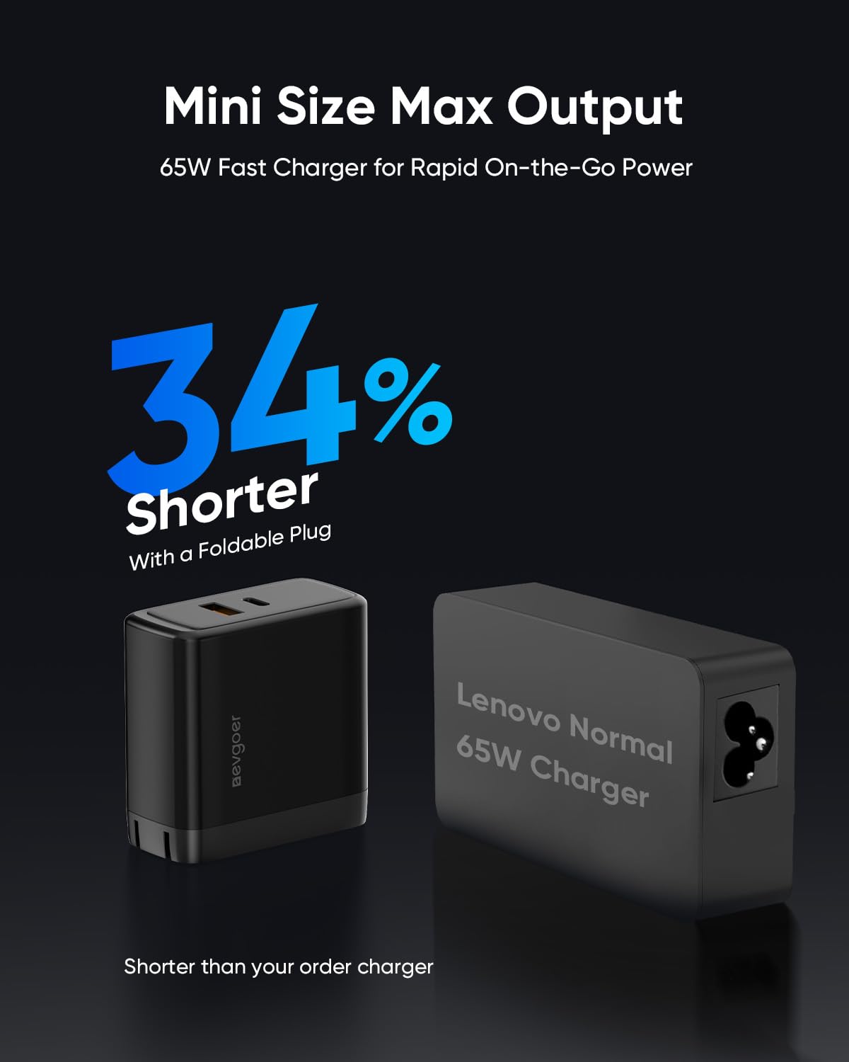 - 34% More Compact & Foldable Design: Engineered to be exceptionally portable, this mini Lenovo laptop charger is 34% shorter than standard Lenovo 65W adapters. It combines high-speed charging, a foldable plug, and wide compatibility—all in a pocket-friendly form that’s perfect for travel.