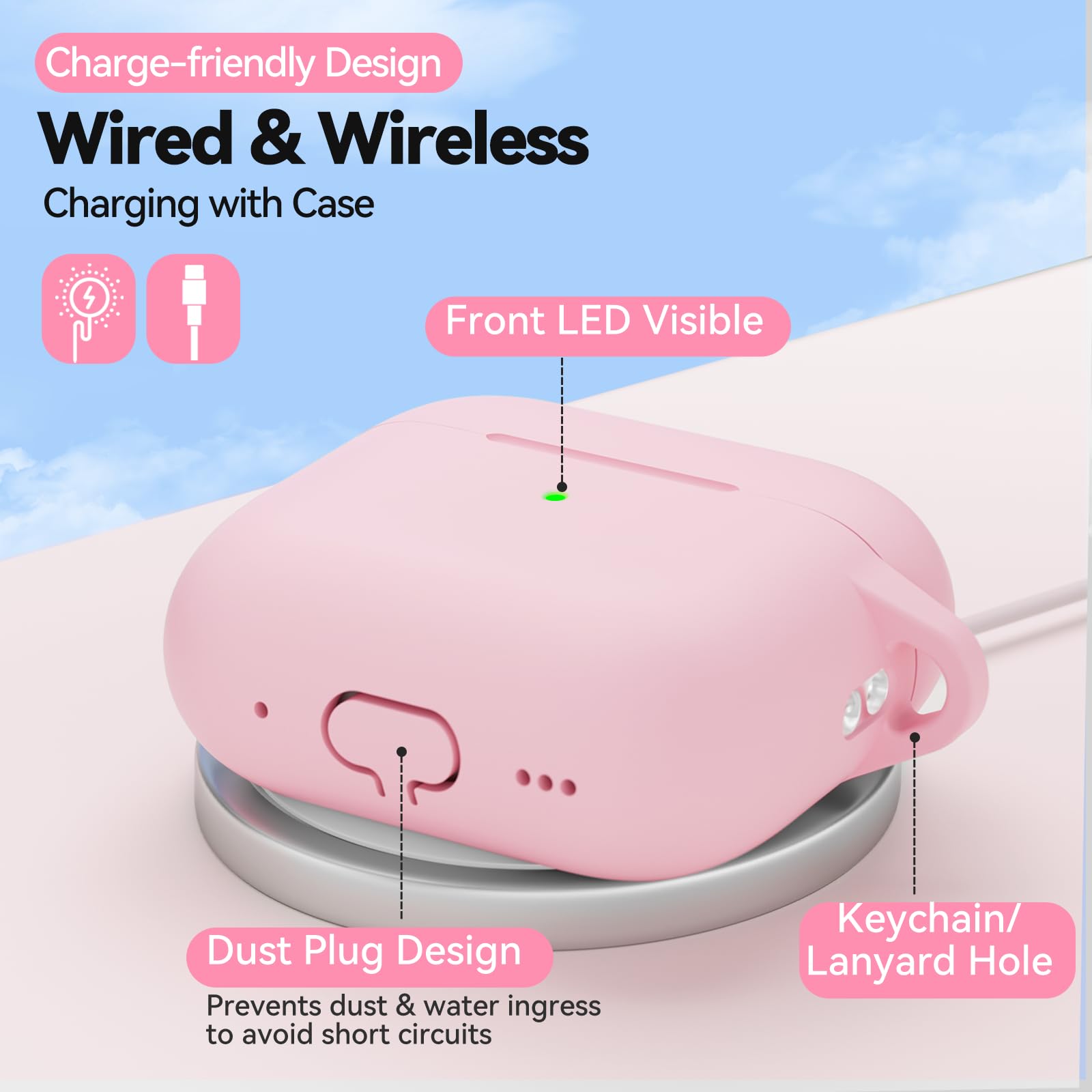 for AirPods 4 Case Pink with Cleaner Kit, TNSNK Soft Silicone Airpod 4 Case Compatible with Apple Airpods 4th Generation 2024 Case Cover with Keychain for Women Girly, Anti-Scratch, Drop Protection