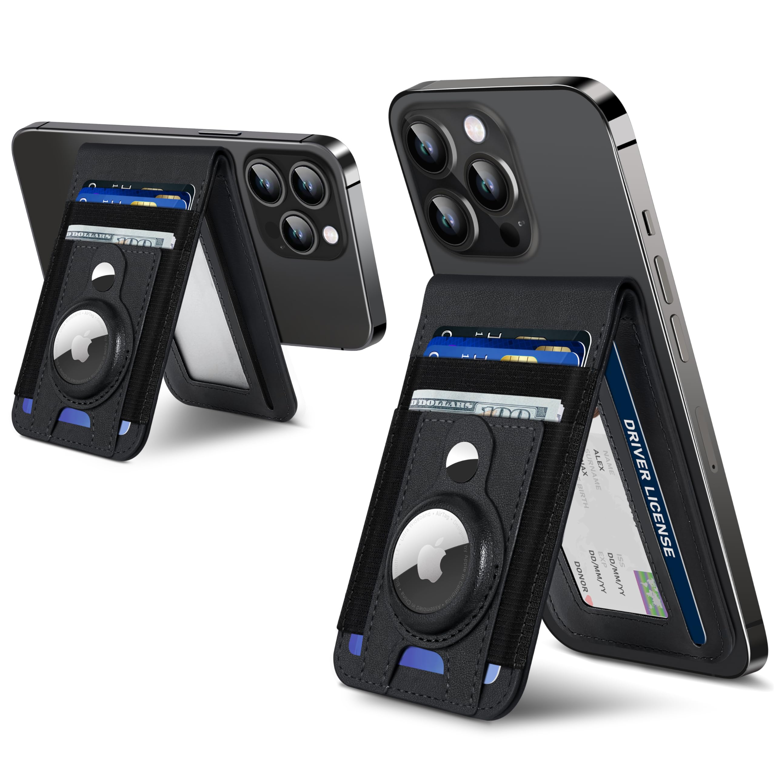 For Magsafe Wallet Stand with Airtag Holder, Strongest Magnetic Wallet for iPhone 17/16/15/14/13/12 Series, ID Window, 4 Card Slots, 10 Cards Holder, Vegan Leather, RFID Blocking, Black