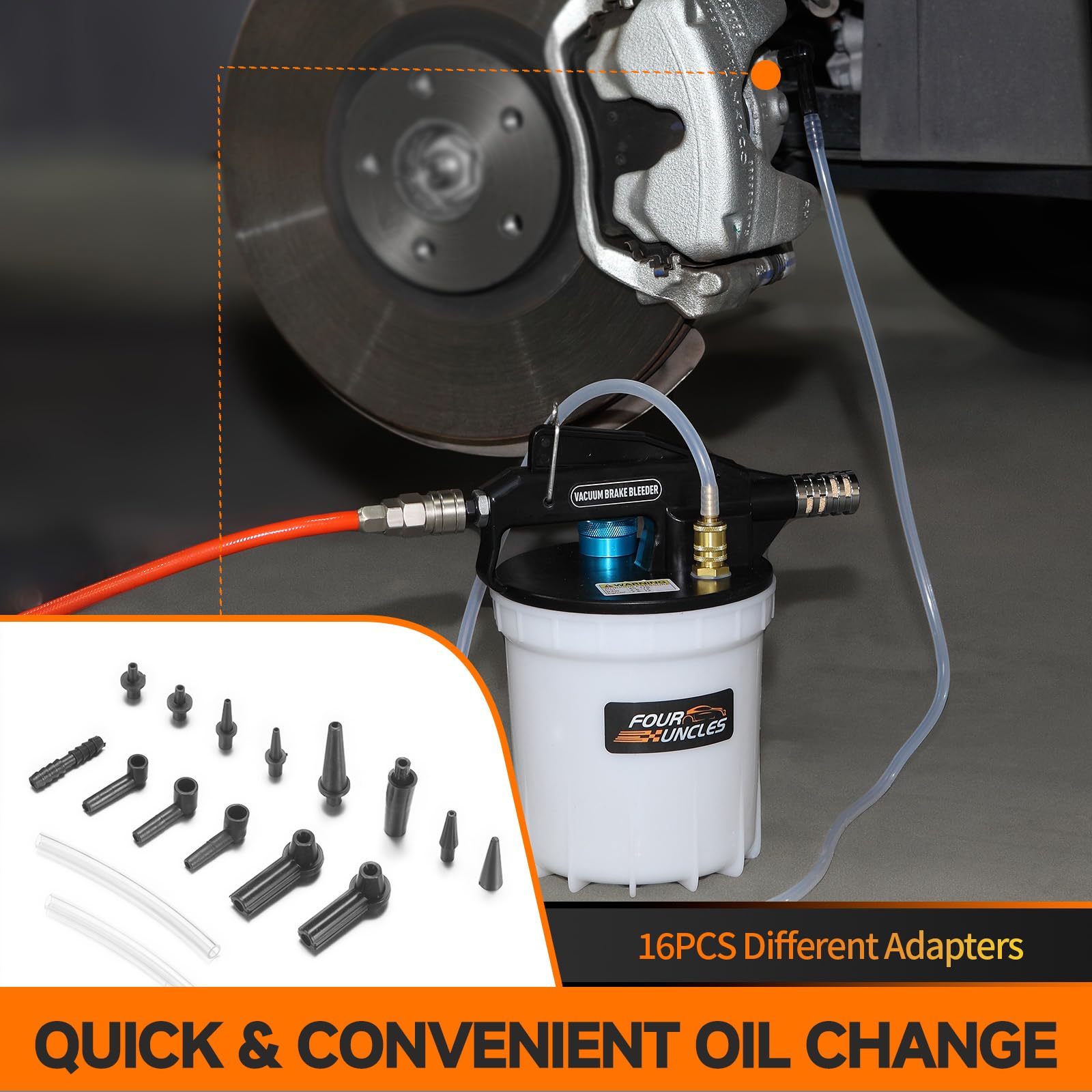 FOUR UNCLES 2L Brake Bleeder Vacuum Pump Kit – Pneumatic Brake Fluid Extractor with 1L Refilling Bottle & Adapters for Automotive Bleeding, One-Person Operation