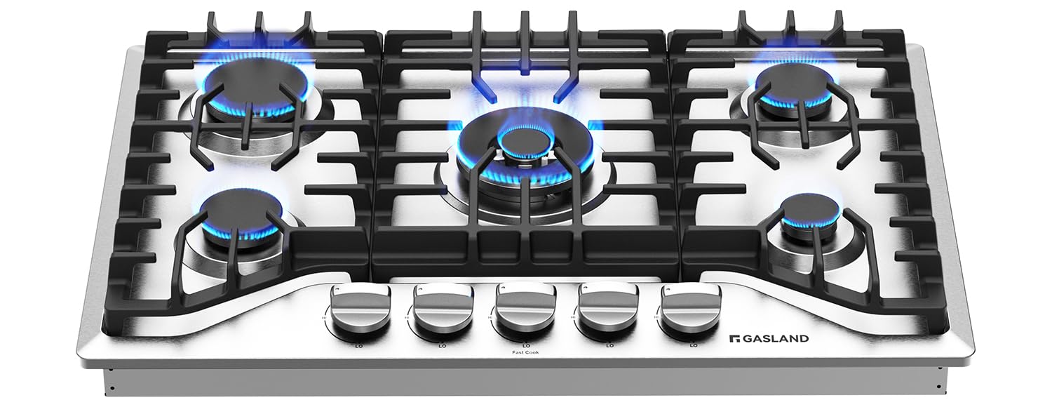 GASLAND 30 Inch Gas Cooktop, PRO GH2305SF 5 Burner Propane Stovetop, Built-in NG/LPG Convertible Cooktops, Gas Countertop Plug-in with Thermocouple Protection, Stainless Steel
