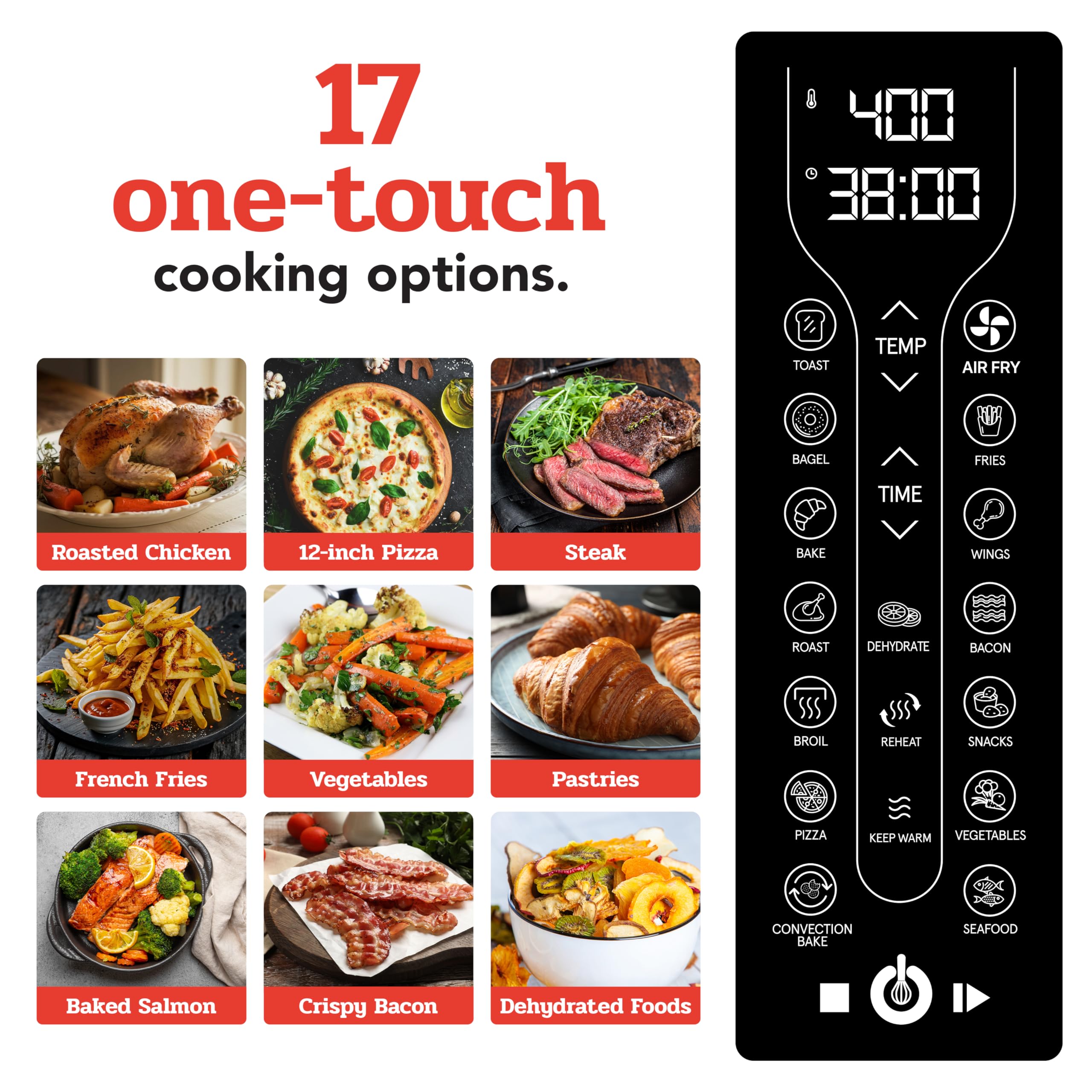 - Multi-Use Cooking Power – Air fry, bake, broil, roast, dehydrate, and toast with 17 presets for easy cooking, from crispy fries to roasted chicken and fresh-baked pizza
