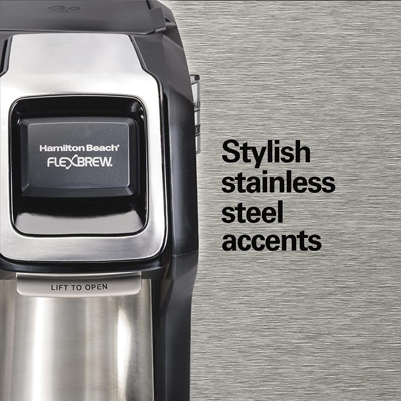 - Space-Saving Design: The Hamilton-Beach FlexBrew Trio Coffee Maker Machines include a 12-cup carafe, single-serve pod holder, brew basket, and removable cup rest with built-in storage, making it the ultimate maquina de café for your kitchen.