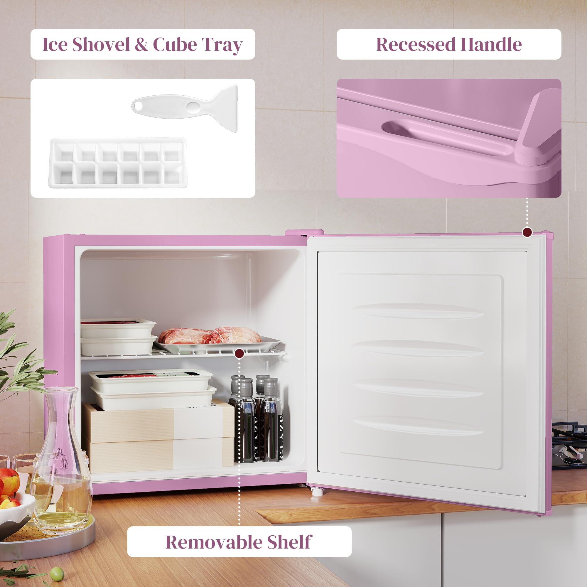 HOMCOM Mini Freezer Countertop, 1.1 Cu.Ft Compact Upright Freezer with Removable Shelves, Reversible Door for Home, Dorm, Apartment and Office, Pink