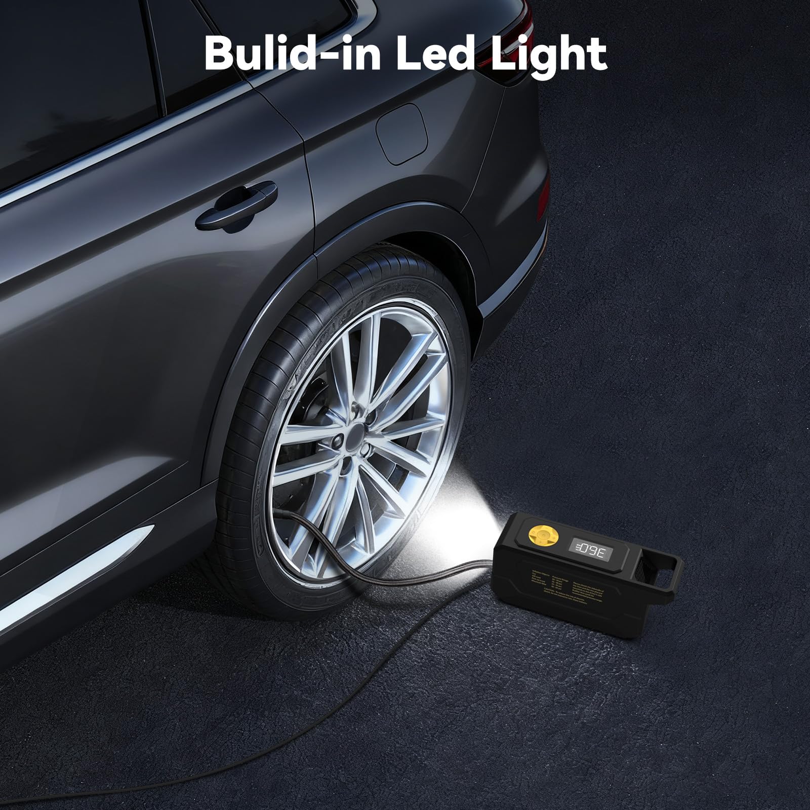 Details: Inzeetor 150 PSI Tire Inflator Portable Air Compressor, 12V DC Auto Shutoff Air Pump with Digital Pressure Gauge and Emergency LED Light for Car Tires, Bicycle & Balloons, Black