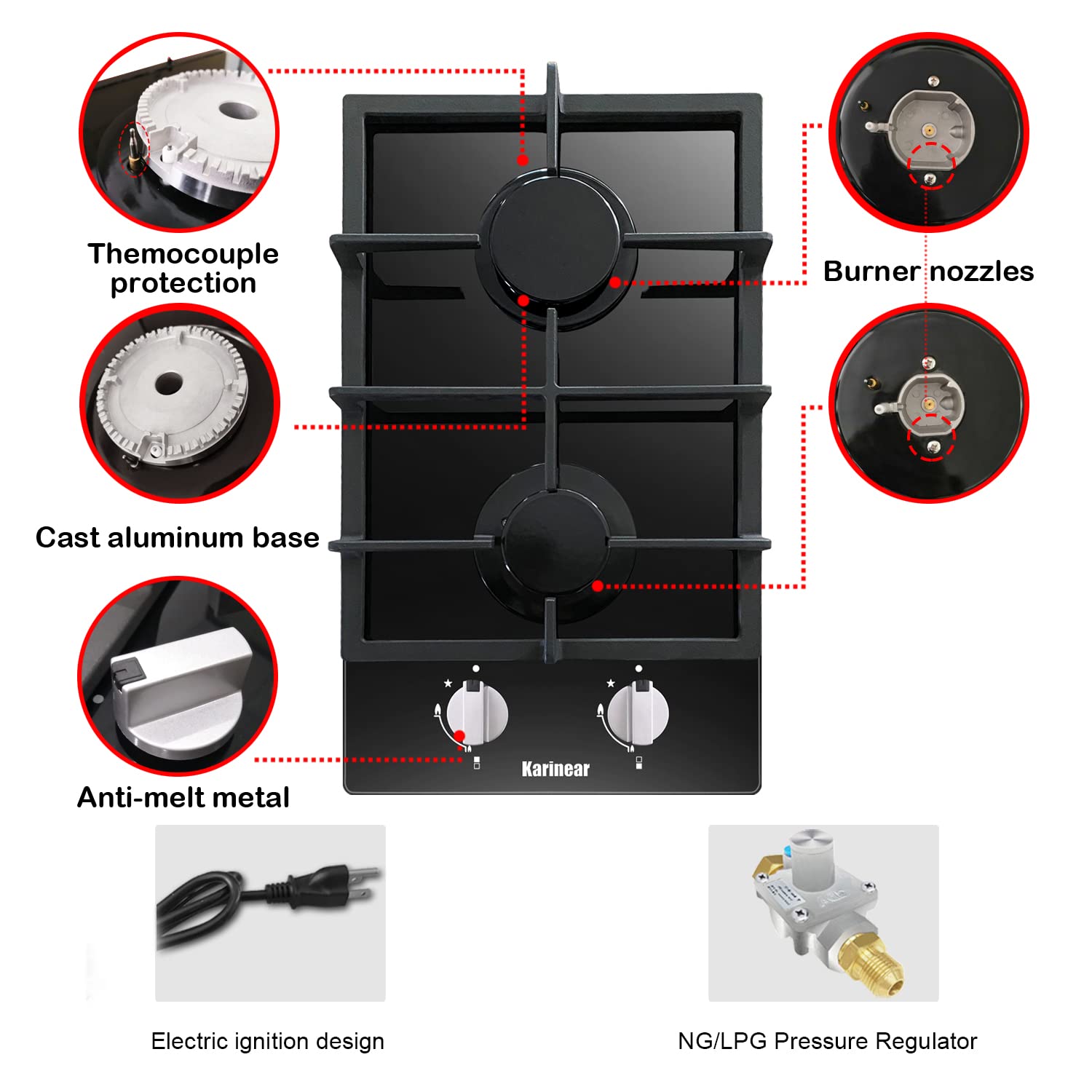 Details: Karinear 2 Burner Gas Cooktop