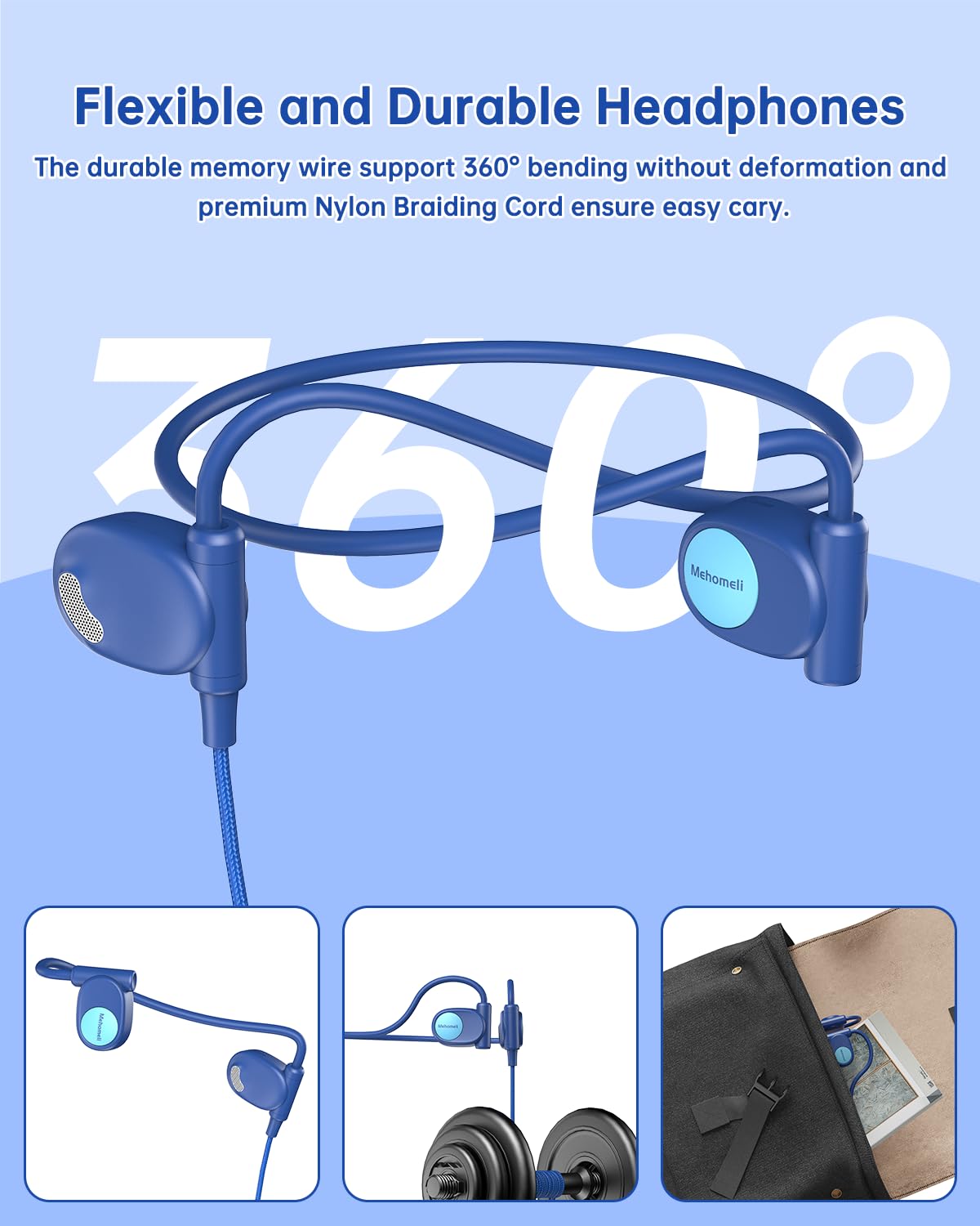 Mehomeli Kid Headphones for School, Air Conduction Open Ear Headphones, 3.5mm Jack Wired Cord, Ultra-Comfort, Ergonomic and Lightweight Design Perfect for School and Outdoor Activities-Blue