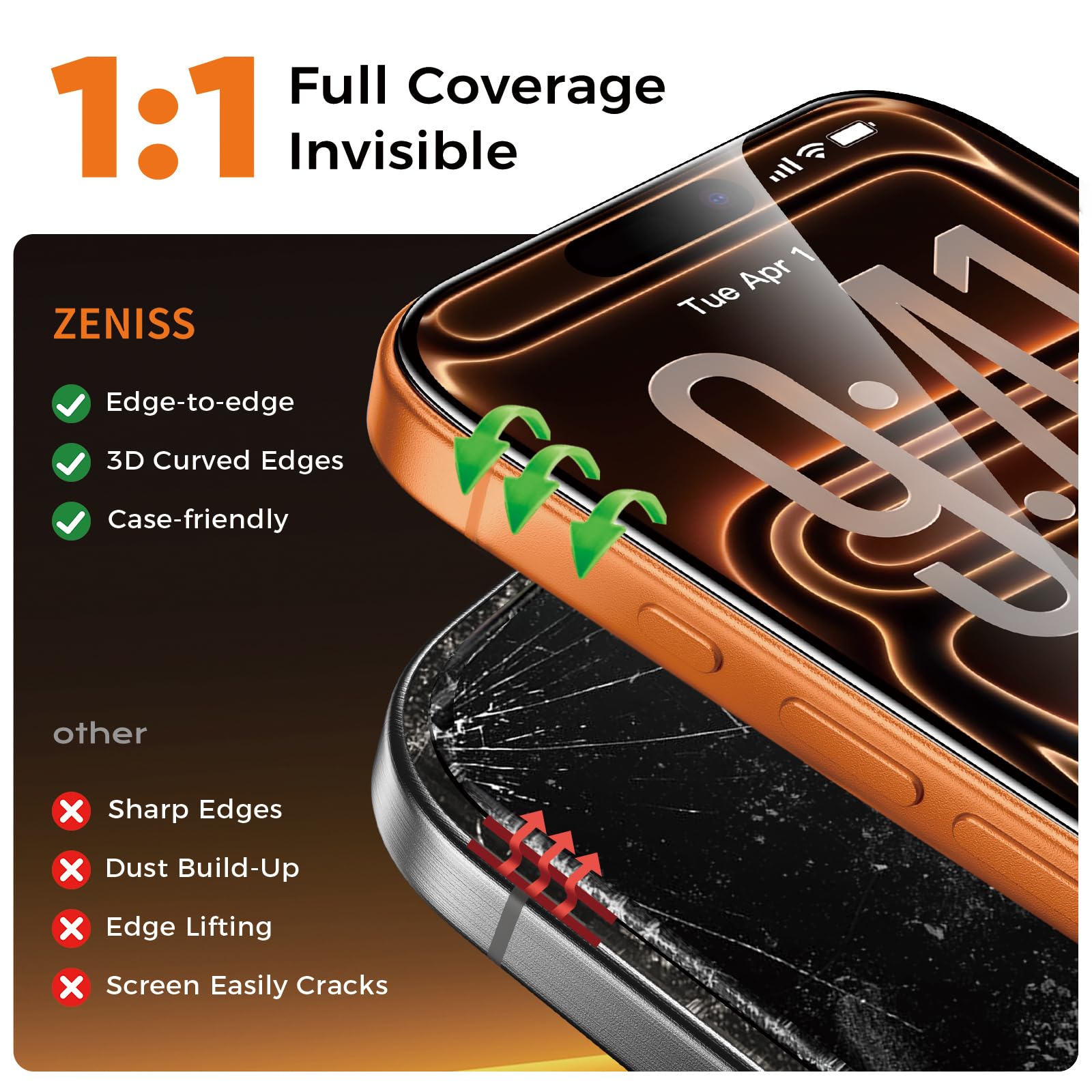 - 1:1 Seamless Fit—Invisible Armor from Edge to Edge:Precisely molded for the iPhone 17 Pro Max, this screen protector for iPhone 17 Pro Max features CNC-carved 3D curved black edges that flow like liquid glass—achieving a 99.9% arc fit that hugs every contour. Fully case-friendly, the full-glass fit leaves zero exposure at corners—no dust buildup, no edge lifting. While others crack from the sides, ours shields even the most vulnerable curves. Most protectors fall short—ours fits like it’s built-in.