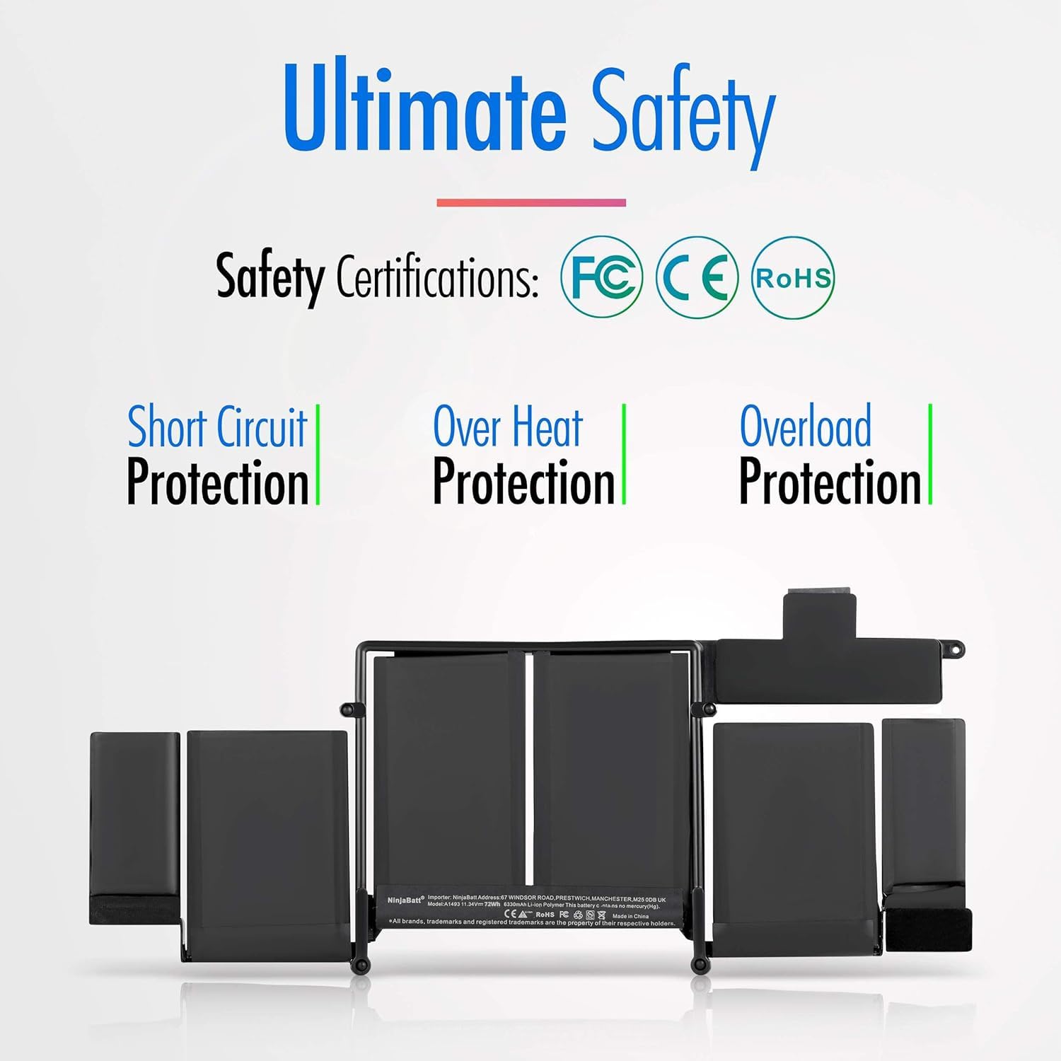 NinjaBatt Battery A1502 A1582 for Apple MacBook Pro Retina 13” A1493 [Early 2015 – Mid 2015, Mid 2014, Early 2013 – Late 2013] – Long Lasting [72Wh/11.42V]