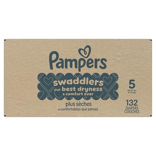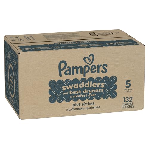Pampers Swaddlers Diapers, Size 5 (20-37 lbs), 132 Count, Absorbent, Keeps Baby Dry and Comfortable, Skin Safe Disposable Baby Diaper (Packaging May Vary)