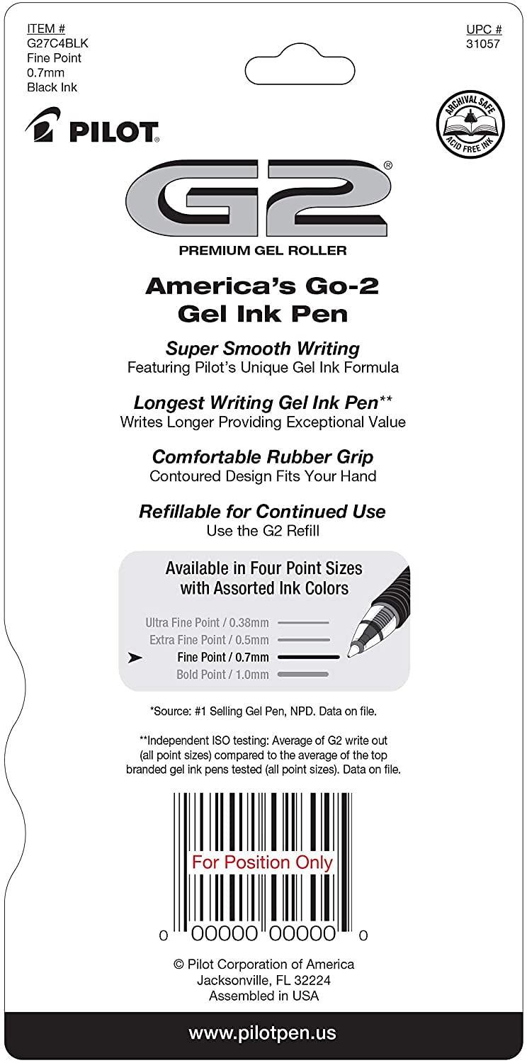 - Smooth & Long-lasting: Enjoy a smooth writing experience with these black gel pens—Pilot pens that glide effortlessly across the page. Proven to be the longest-lasting gel ink pens (Data on File), they let you write more and refill less
