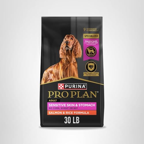 Purina Pro Plan Sensitive Skin and Stomach Dog Food Dry, Adult Salmon & Rice Formula, Digestive Health – 30 lb. Bag