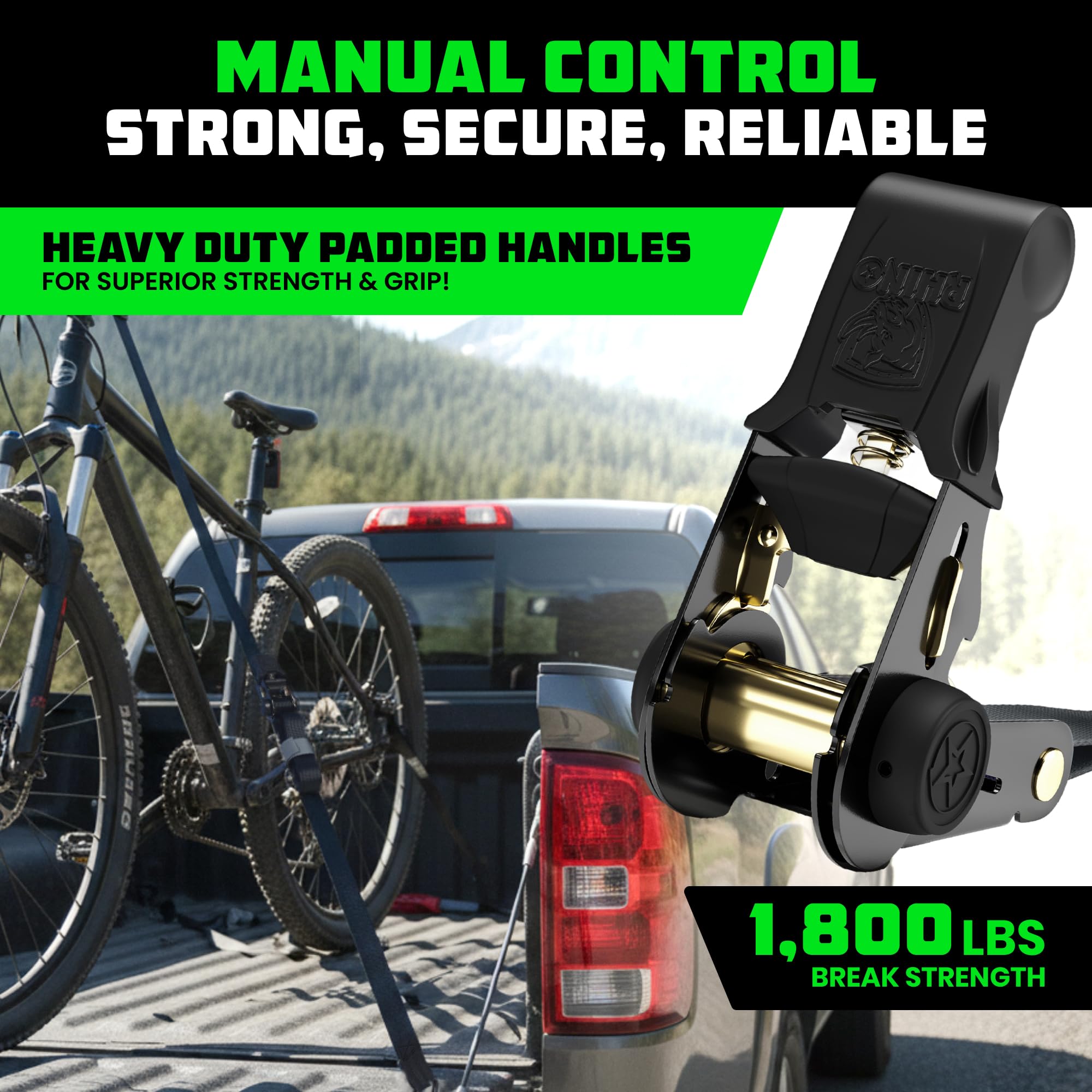 - RHINO EZ-RELEASE SYSTEM – Features a User-Friendly Design That Allows for Quick and Easy Strap Release, Enhanced by our Patented End Cap that Protects the Ratchet Mechanism, Saving Time During Loading and Unloading.