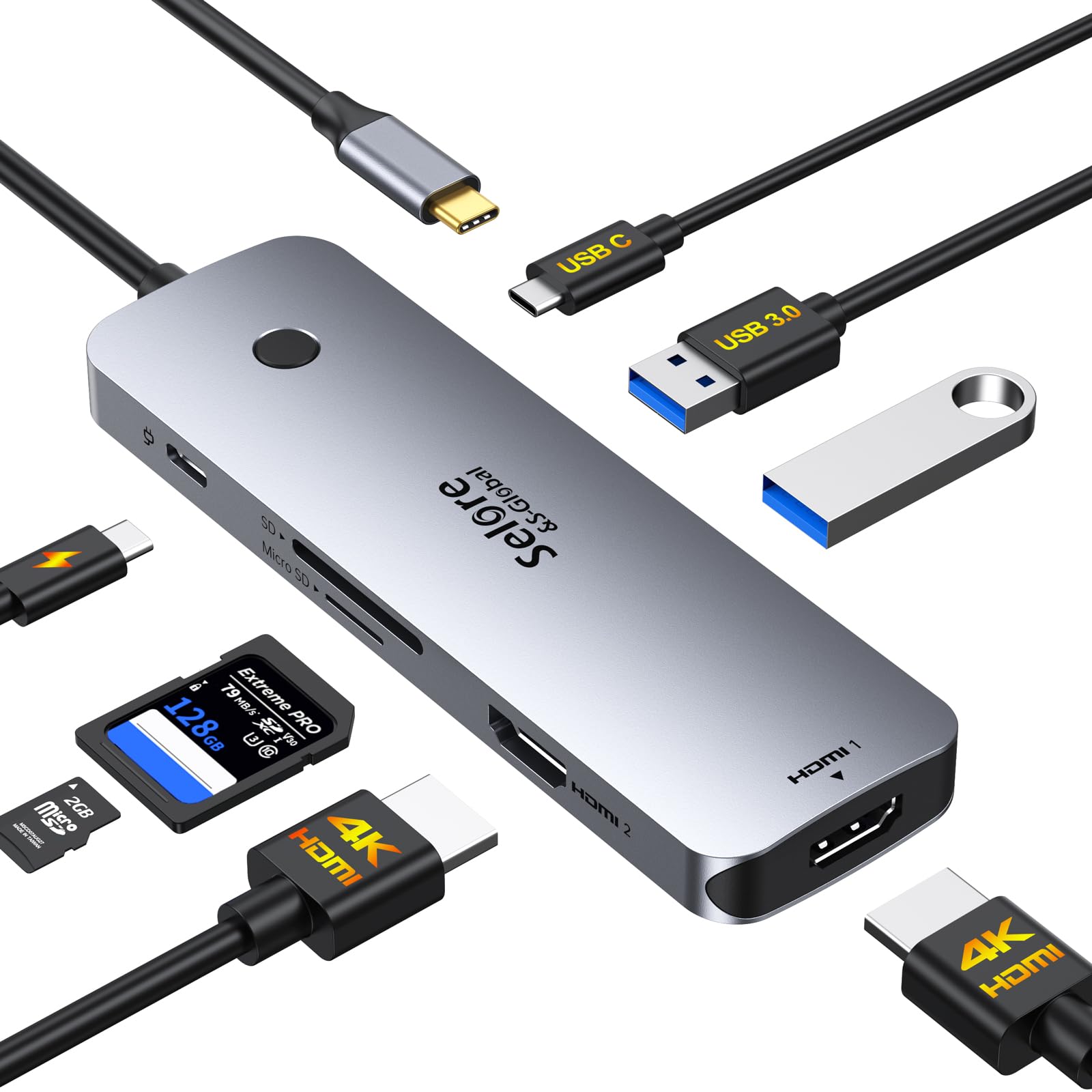 - 【8 in 1 USB C Docking Station Dual Monitor】This Selore laptop docking station includes 2 HDMI(4K@60Hz), 2 USB-A Ports(5Gbps), USB-C Port(5Gbps), 100W PD charging, and SD/MicroSD slots (104Mbps). 📍Note: Docking stations require a Thunderbolt or full-featured USB-C port