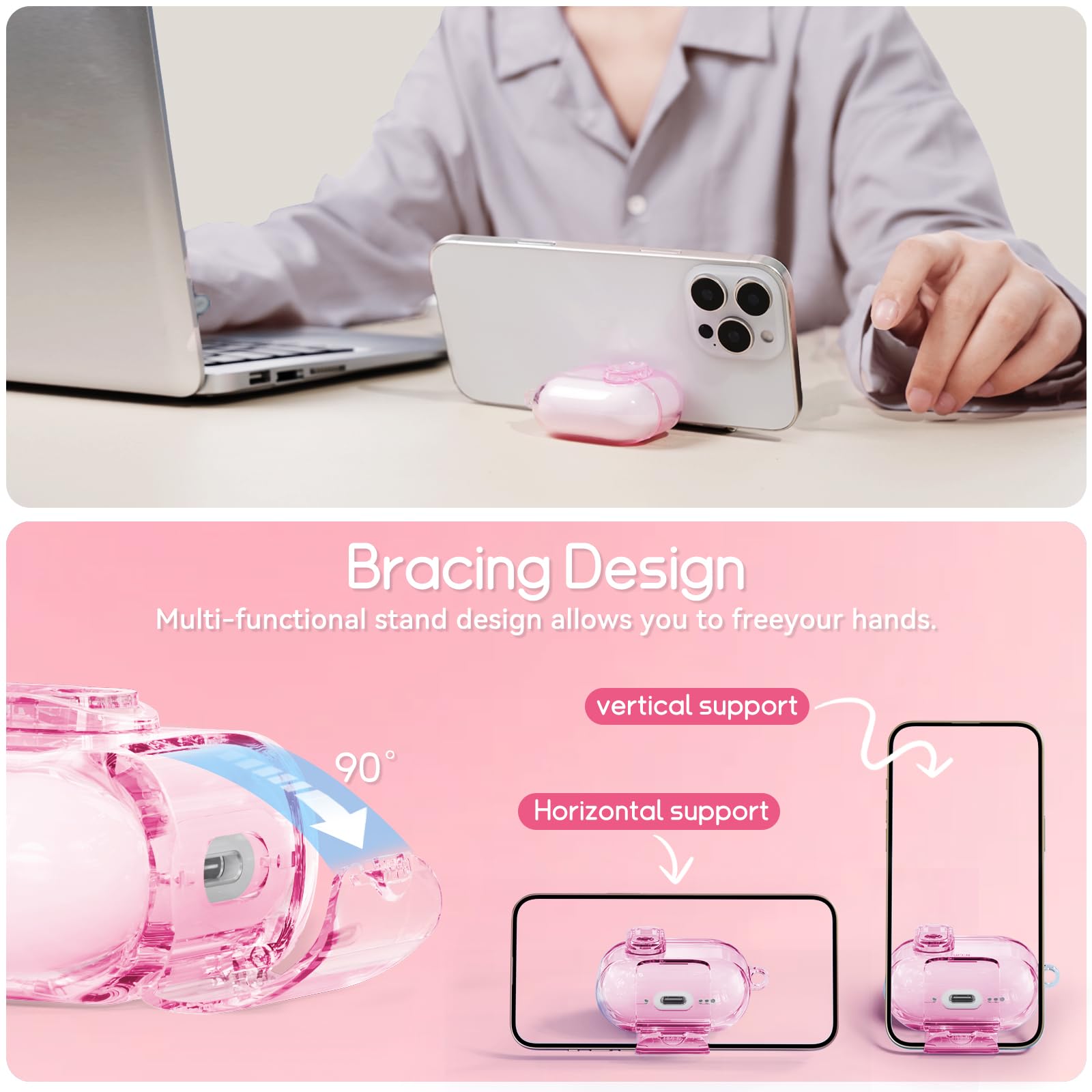 • Phone Stand Function:This case has a hidden stand on the bottom of the case,Open it to have a phone stand,Free your hands, make reading and watching easier, ideal for watching movie or video chator following recipes,With dustproof function, can effectively prevent dust and debris from getting into the charging port,Which is so practical.