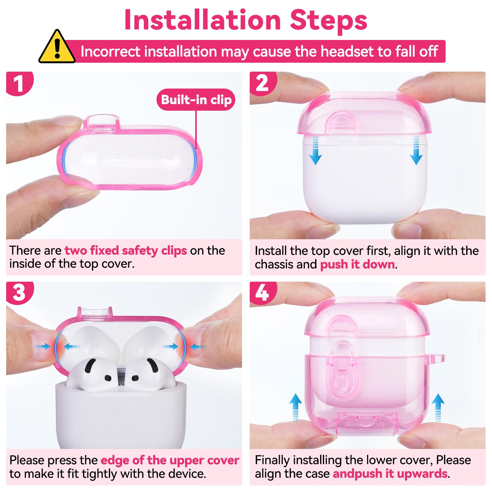 • Accessories Include:1*AirPod 4 Case,1*Cleaning Pen,1*Exguisite Bling Keychain,1*Booster(Slowly push the black booster into the charging port, and the protective case can be easily removed from the device)(Please Note: Airpods 4th headphone and charging case are not included)