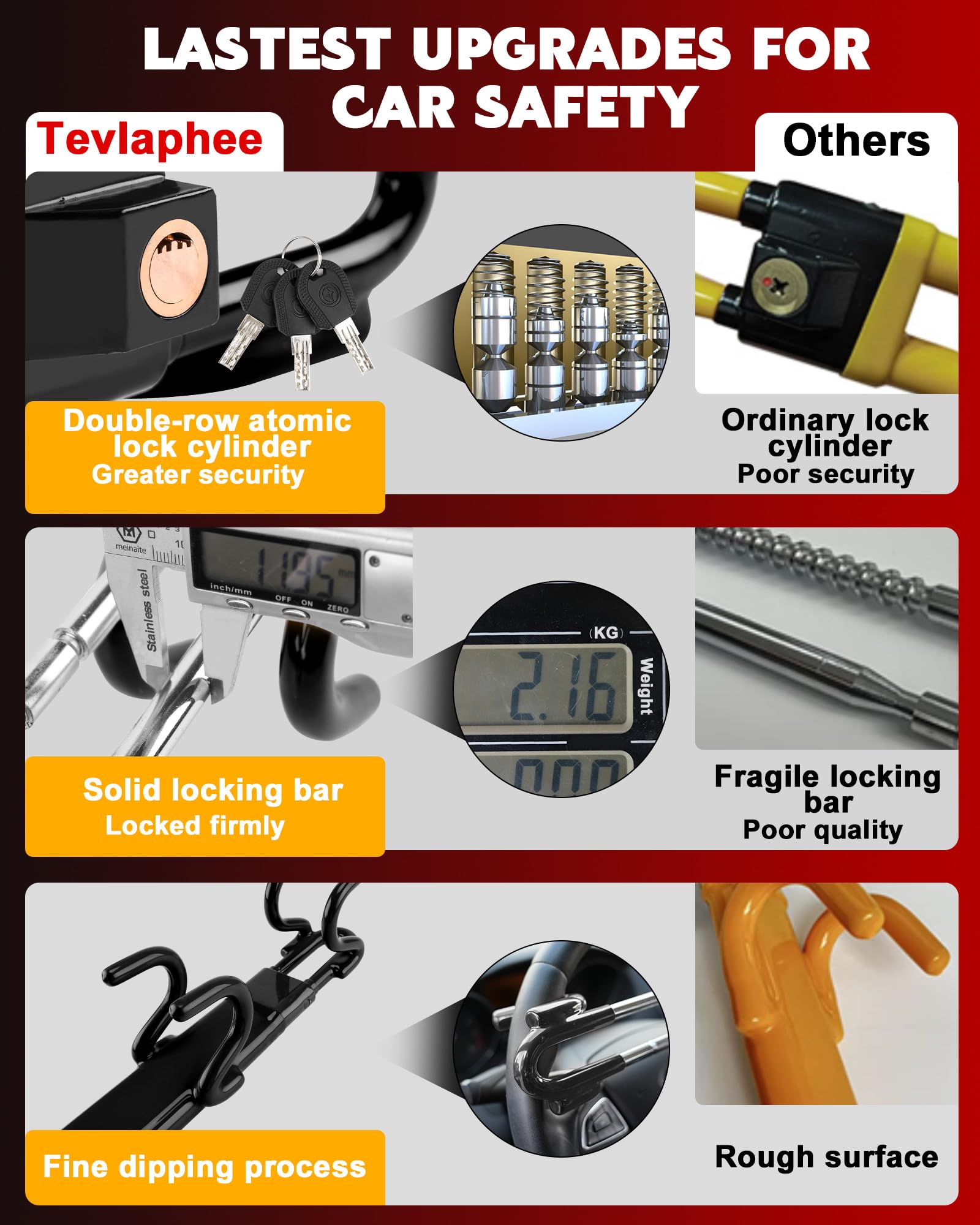 - YOU DESERVE THE BEST:If you are not satisfied with your purchase or have any questions about our steering lock,please find Tevlaphee team via Amazon! You have no risk in trying. We promise you will get friendly products and service. You can buy with confidence!