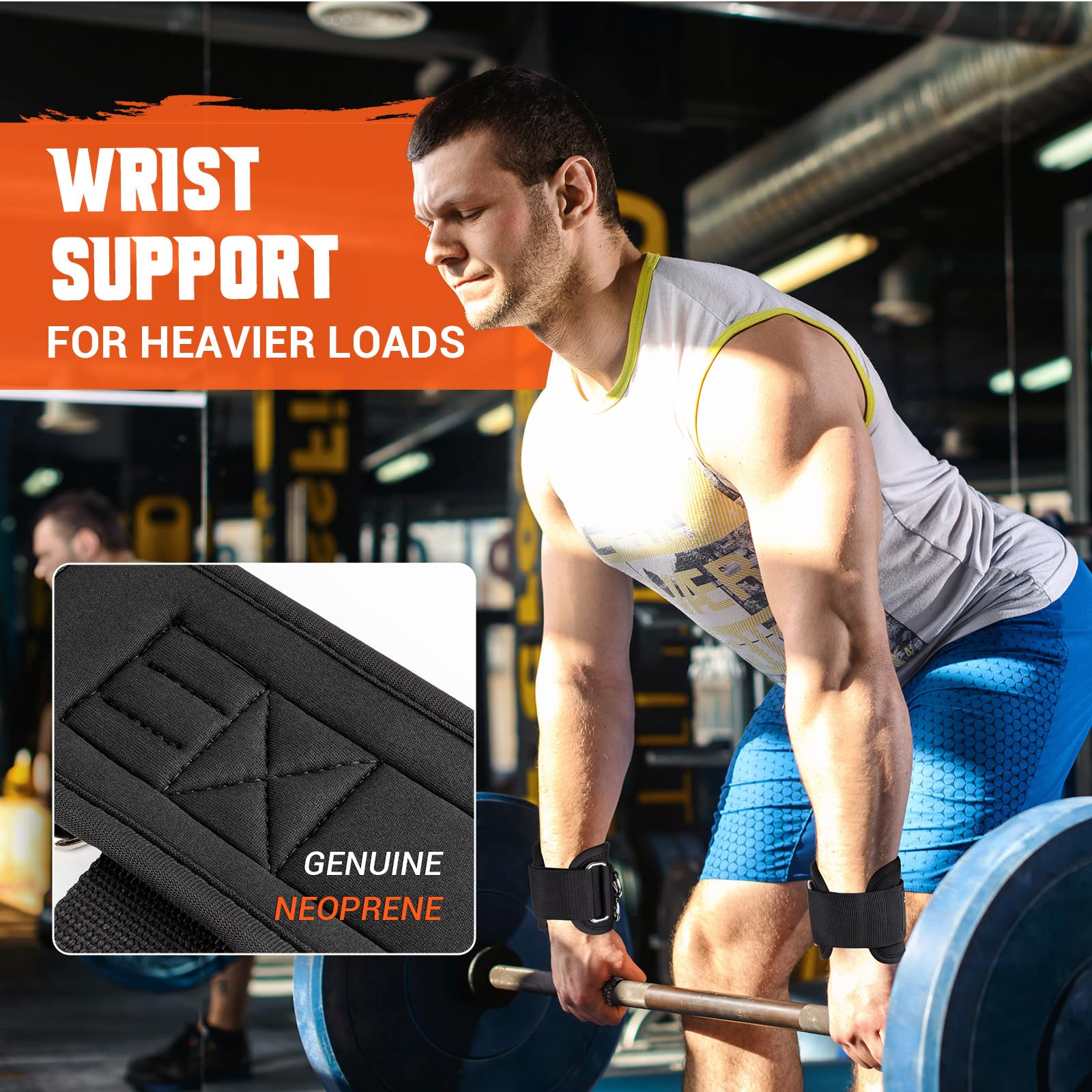 Weight Lifting Straps with D Rings, 2 In 1 Heavy Duty Gym Wrist Straps for Men, 8mm Neoprene Padded Non-Slip Lifting Wrist Straps for Weightlifting, Deadlifting, Cable Machine Workouts & Pull-Ups